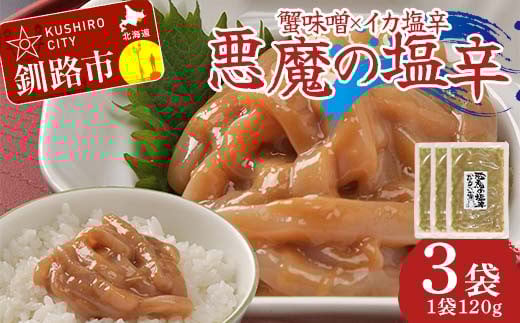 ふるさと納税 魚貝類 北海道 釧路市 蟹味噌×イカ塩から 悪魔の塩辛120g×3袋 いかの塩辛 おつまみ ご飯のお供 おかず F4F-8236
