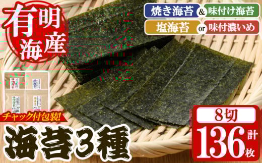 ふるさと納税 乾物 のり 福岡県 芦屋町 海苔バラエティセット(合計136枚・8切) 有明のり のりノリ おにぎり 常温 常温保存 チャック付き 小分け バラエティ 食…
