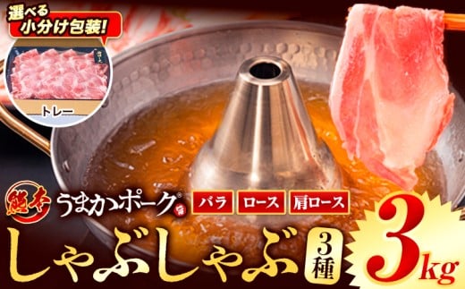 一度に3つの部位を楽しめる!しゃぶしゃぶスライスセットをご用意いたしました!商品情報:熊本うまかポーク しゃぶしゃぶセット 1.2kg名称:豚肉産地:熊本県産(大津町産含む)内容量:(トレー包装)・肩ロース 600g(300g×6)・ロース 1.2kg(300g×4)・バラ 1.2kg(300g×4)計3000g賞味期限:パッケージに記載保存方法:-18℃以下で冷凍配送方法:冷凍便でお届けします。