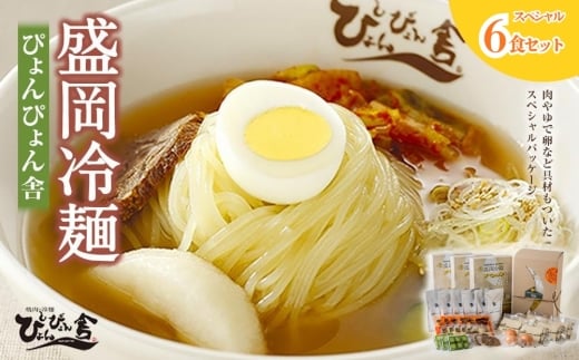 その味をそのままご家庭で楽しめるように、トッピング(キムチ、ゆで卵、甘酢きゅうり、牛味付肉、酢、 ごま)が付いた本格生タイプの盛岡冷?6食詰合せです。