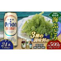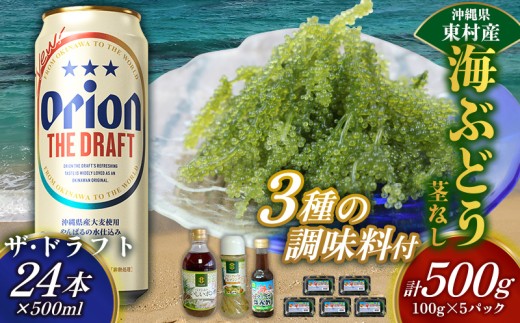 ふるさと納税 乾物 海藻 沖縄県 東村 東村を楽しむセット 海ぶどうセット(茎無)500g&調味料3種&ザ・ドラフト500ml×24本 海ブドウ 海ぶどう うみぶどう パ…