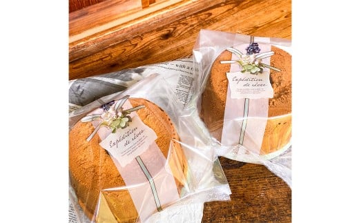 バニラビーンズ風味のシフォンケーキと、ベルガモットで香りづけされたアールグレイで上品な紅茶の香り漂う風味の2種類セット。