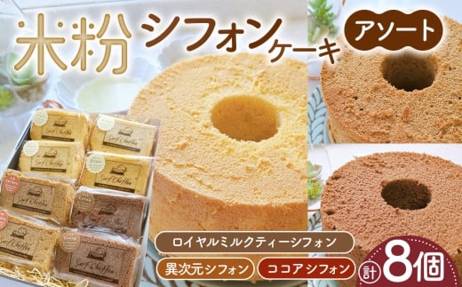 異次元シフォン、ロイヤルミルクティーシフォン、ココアシフォンの米粉シフォンケーキ詰め合わせです。
