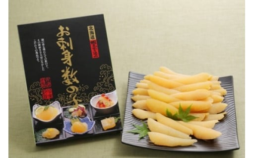 一世紀の時を経て、寿都湾に帰ってきた前浜にしんの数の子を、しゃきしゃき、こりこりにうすく味付けした「これぞ逸品」の一品です。