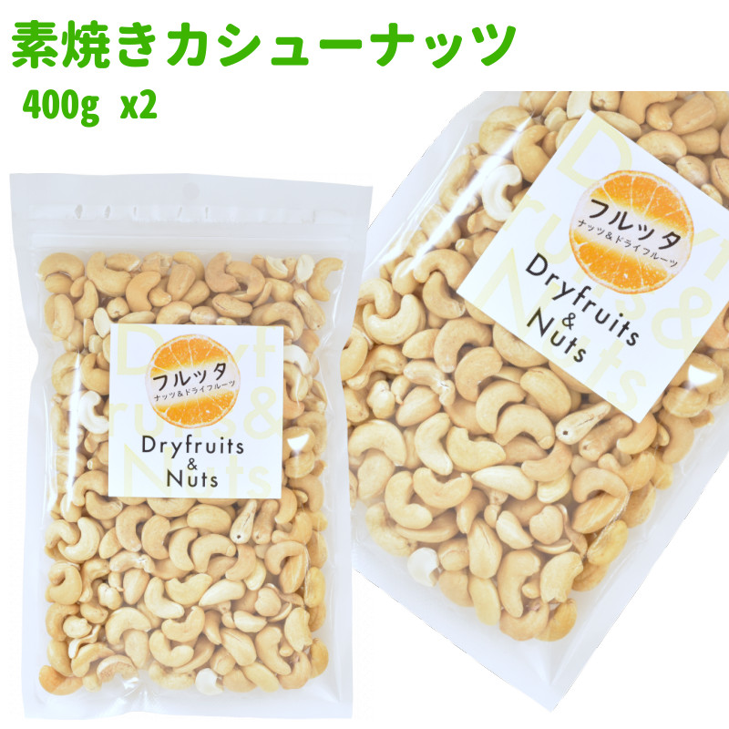 インド産 素焼きカシューナッツ 800g (400g ×2袋) ロースト 無塩 (無加塩) チャック付き袋 脱酸素剤入り