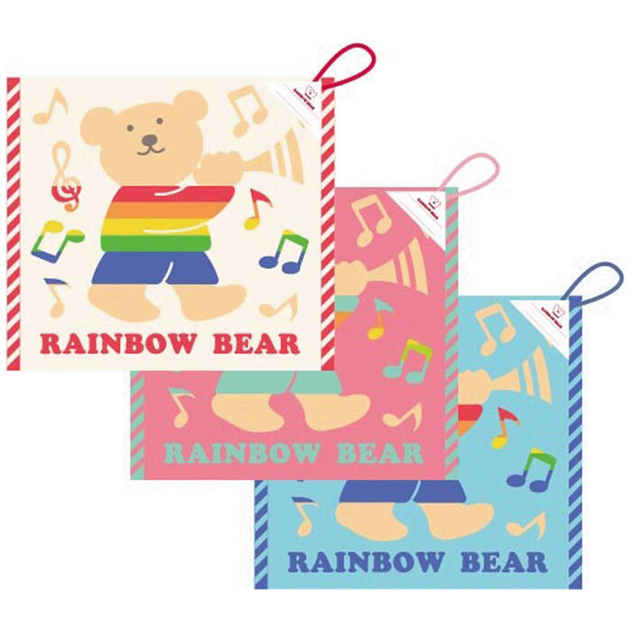 [メール便対応]レインボーベア パレード ループ付ウォッシュタオル (ハンカチタオル ハンドタオル プレゼント ギフト 贈り物 出産祝い 誕生日)