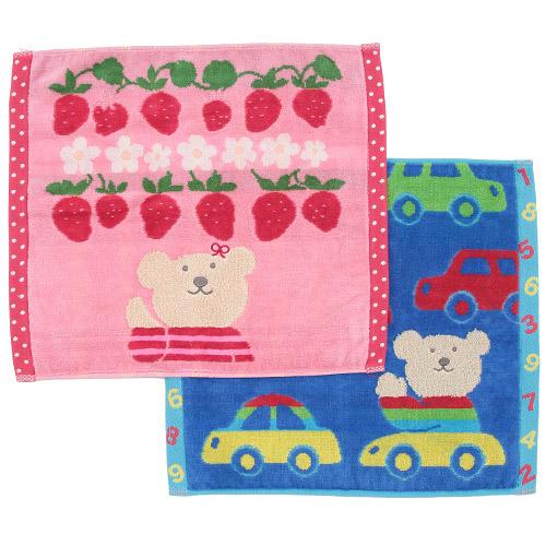 [メール便対応]レインボーベア わくわく ウォッシュタオル (苺 車 ハンカチタオル ハンドタオル プレゼント ギフト 贈り物 出産祝い 誕生日)