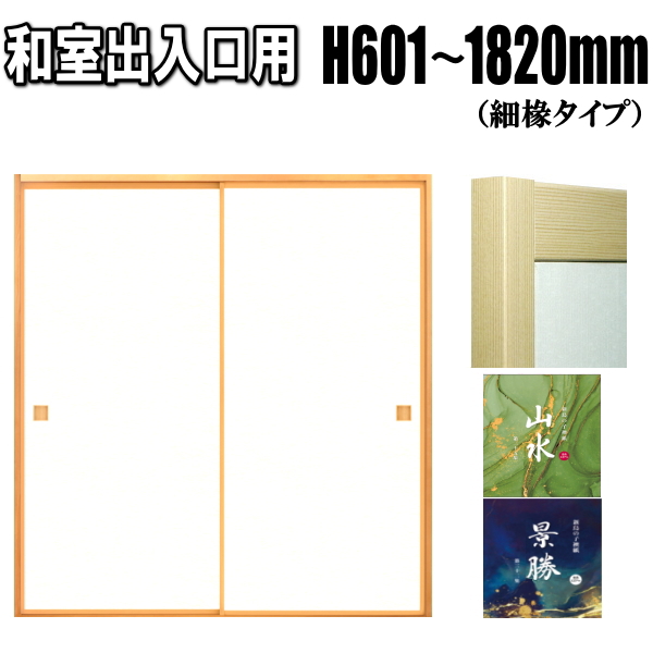 山水・景勝シリーズ 和室出入口ふすま 襖タイプ 高さ:601〜1820mm細ふちタイプミゾサイズ9mm 間仕切