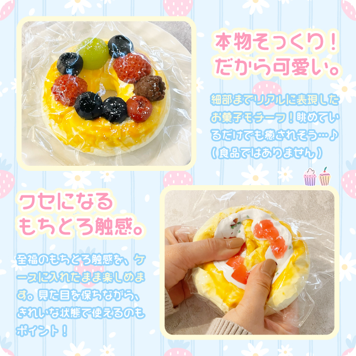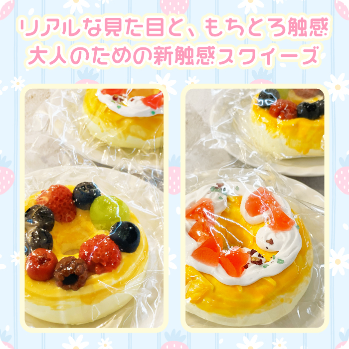 【もちとろスクイーズ もっちりドーナツ】最新 スクイーズ お菓子 ケーキ ピーチ ミックスベリー スイーツ 袋 韓国 SNS ストレス解消 シリコン
