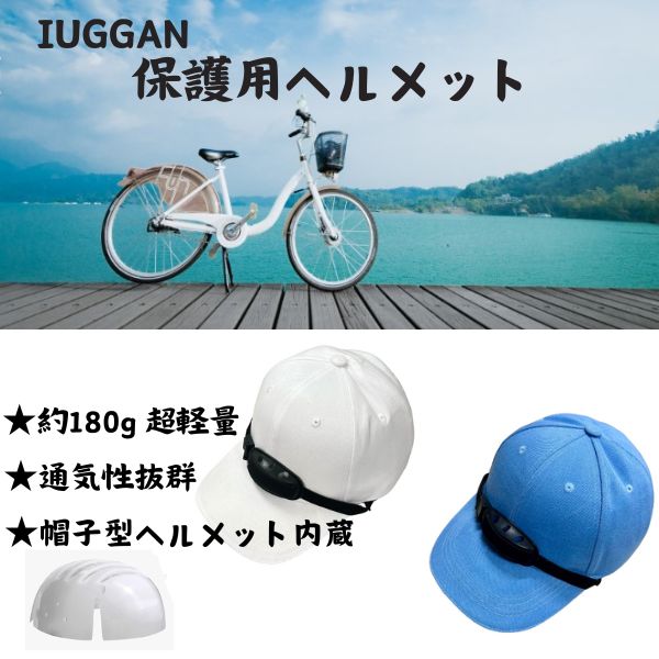 IUGGAN 自転車 ヘルメット 帽子型 日焼け対策 内蔵頭部保護プロテクター 男女兼用 ヘルメット 耐衝撃 キャップ 頭囲56~60cm