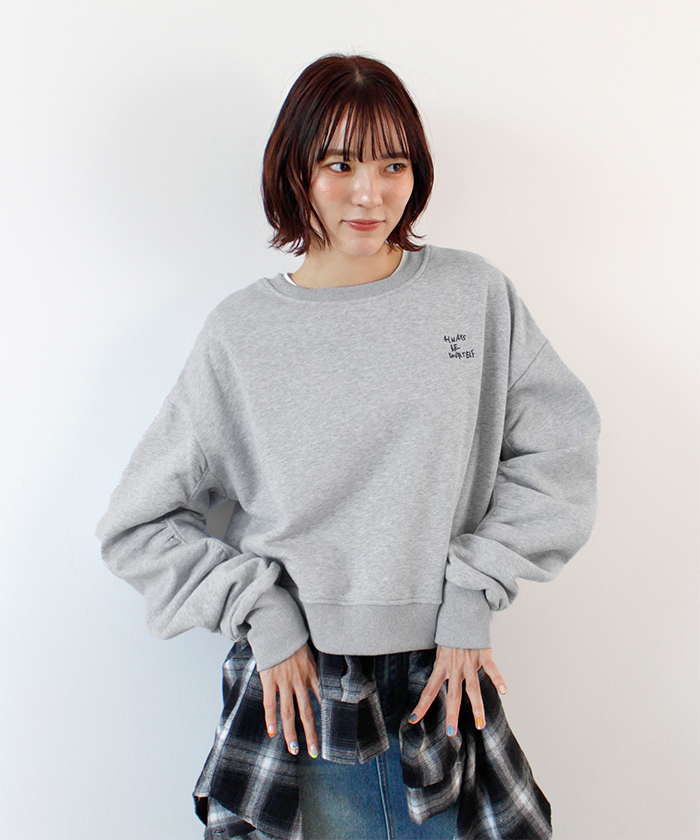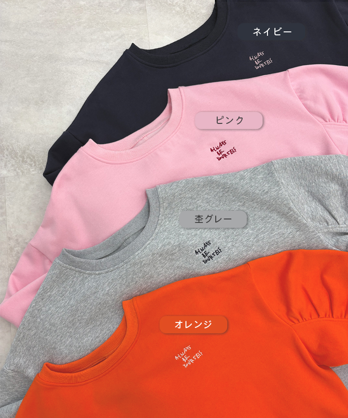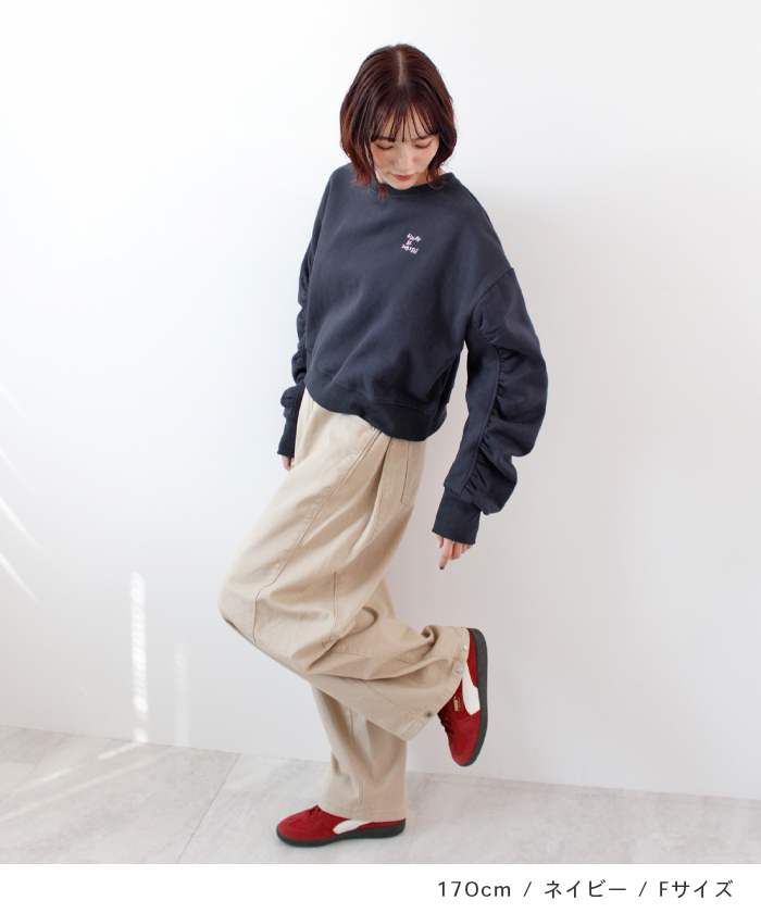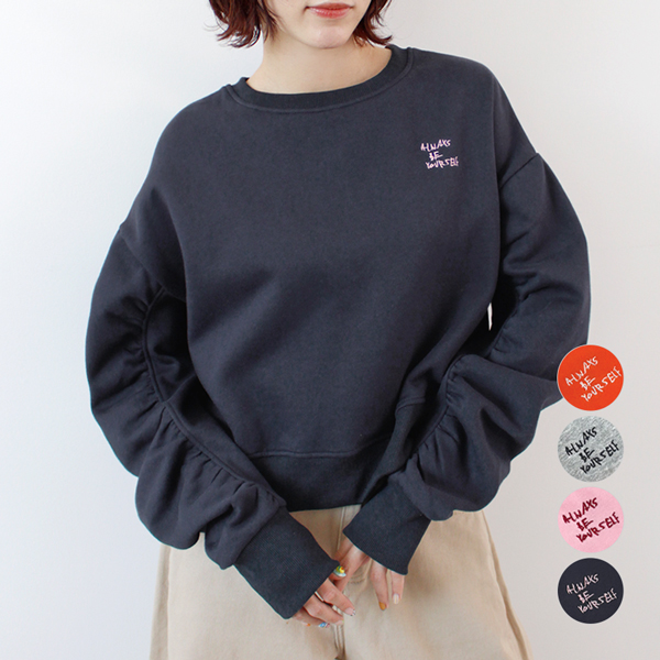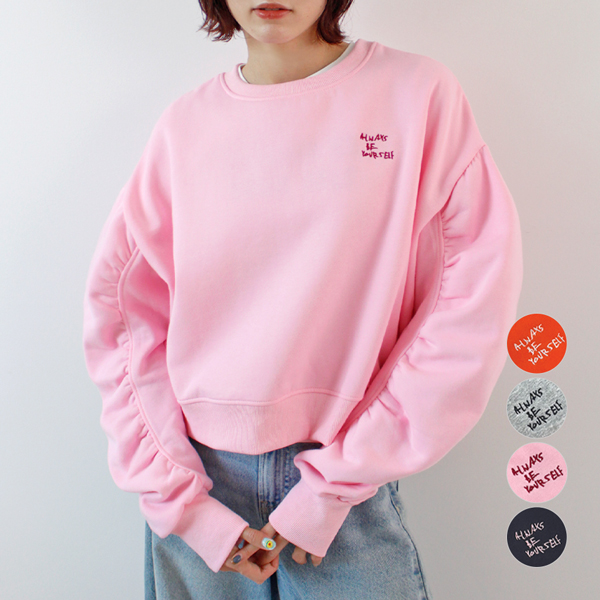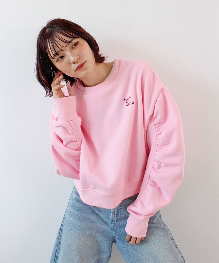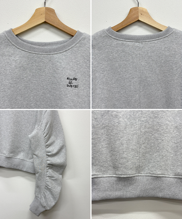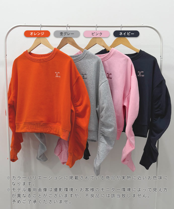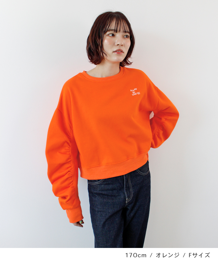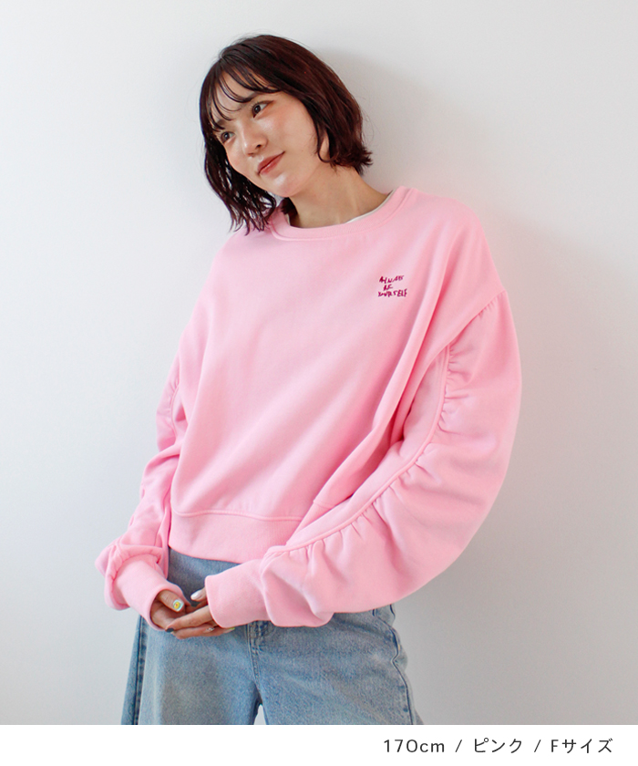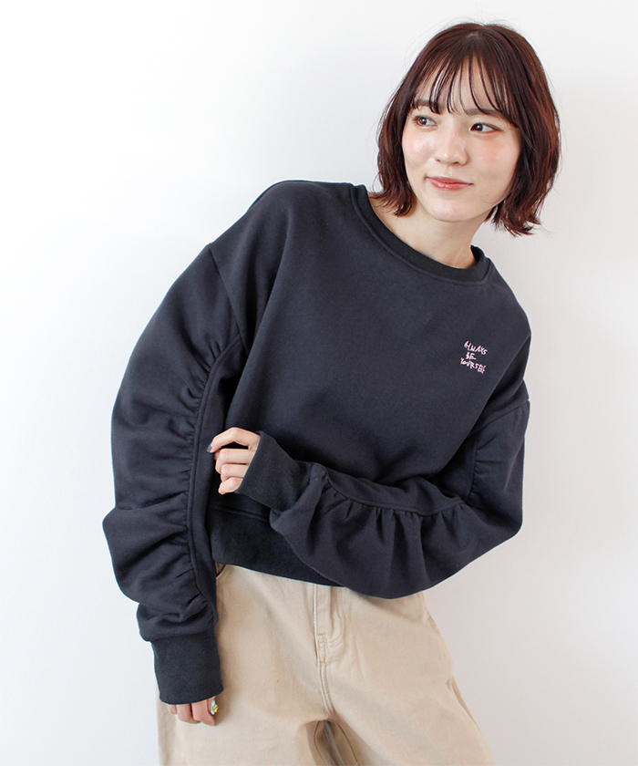 スウェット シャーリング 裏起毛 ショート丈 短丈 袖ギャザー ドロップショルダー レディース カジュアル / 【ABYS】袖シャーリング裏起毛スウエット