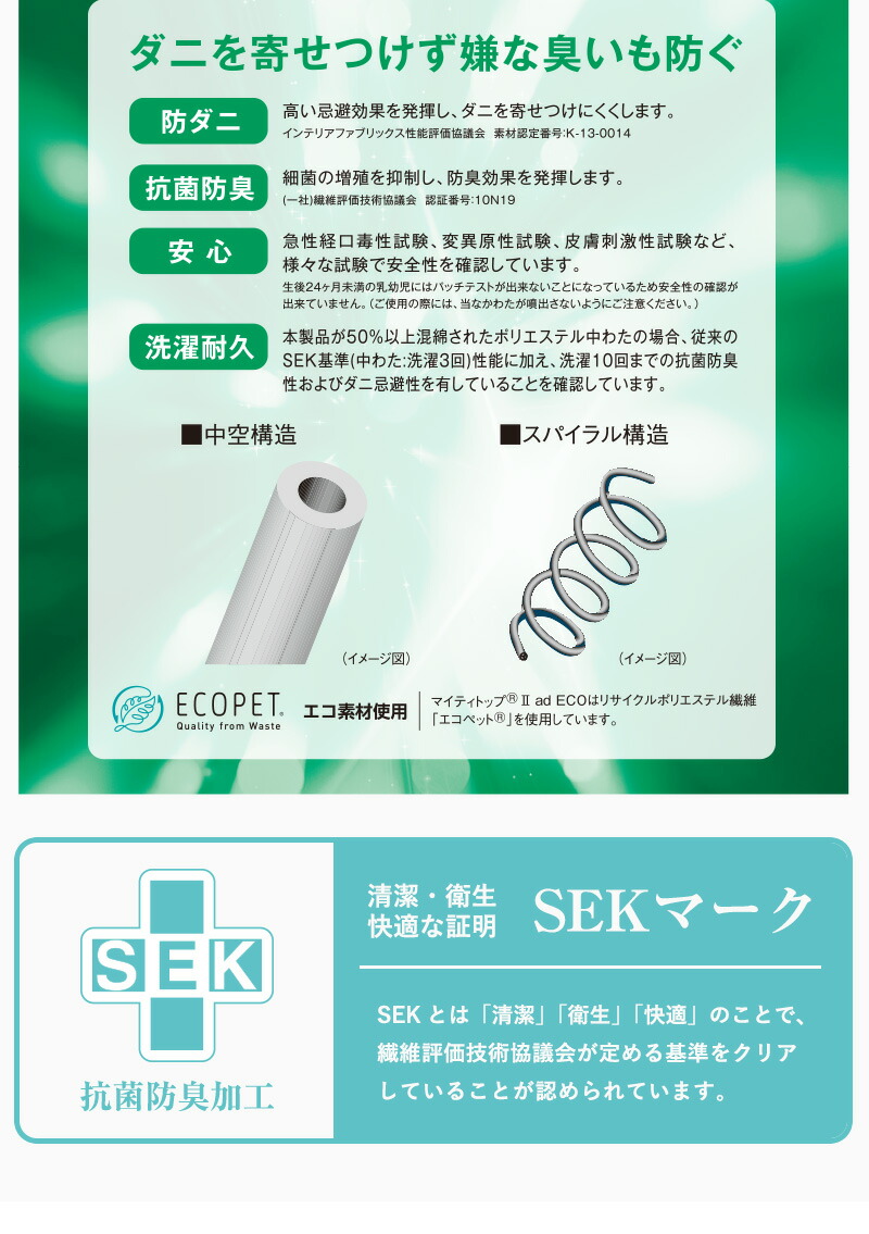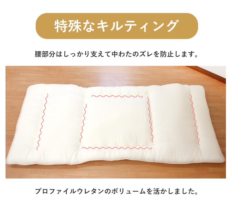 | この商品は「敷き布団」のお届けです。中綿はマイティトップ(C)2adECOを使用しております。 | |