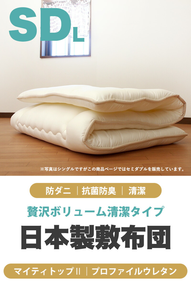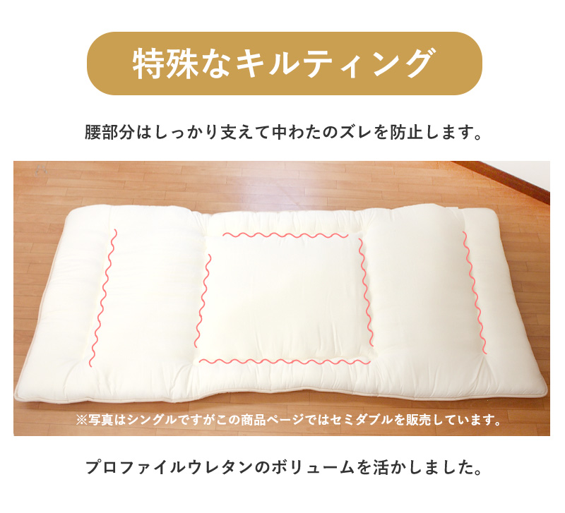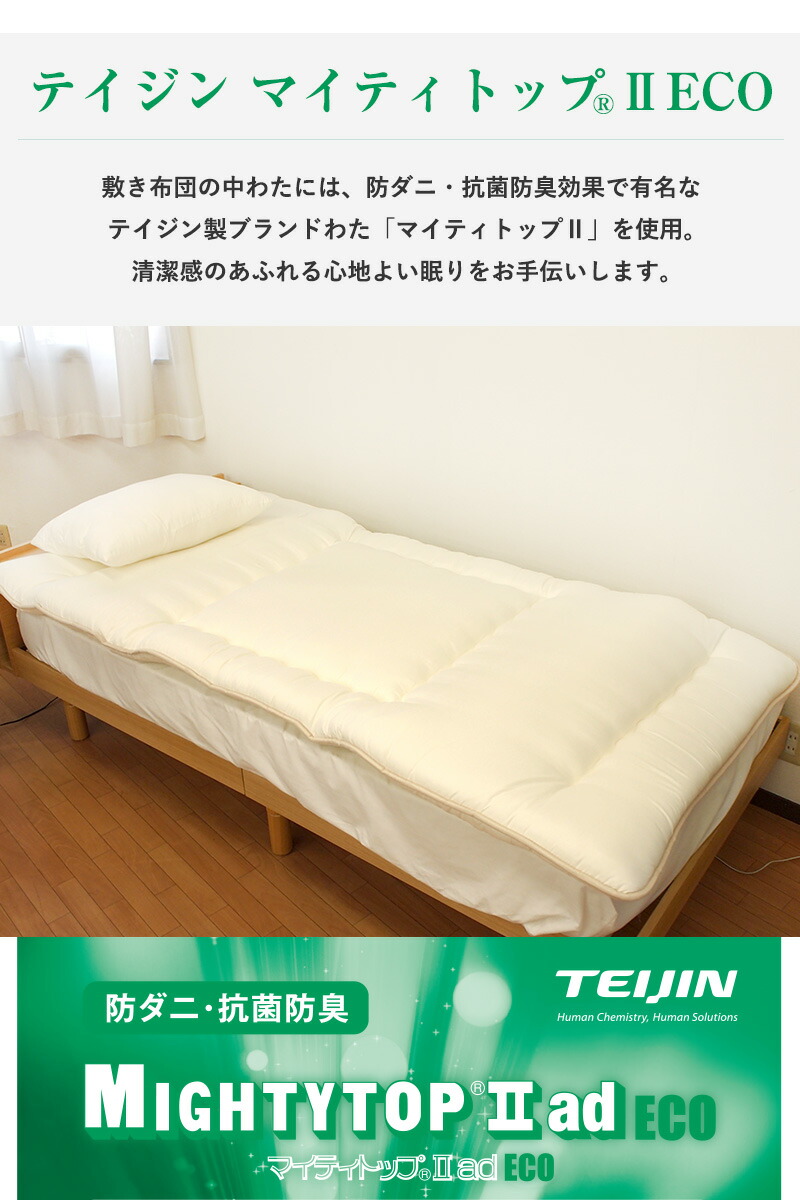 | この商品は「敷き布団」のお届けです。中綿はマイティトップ(C)2adECOを使用しております。 | |