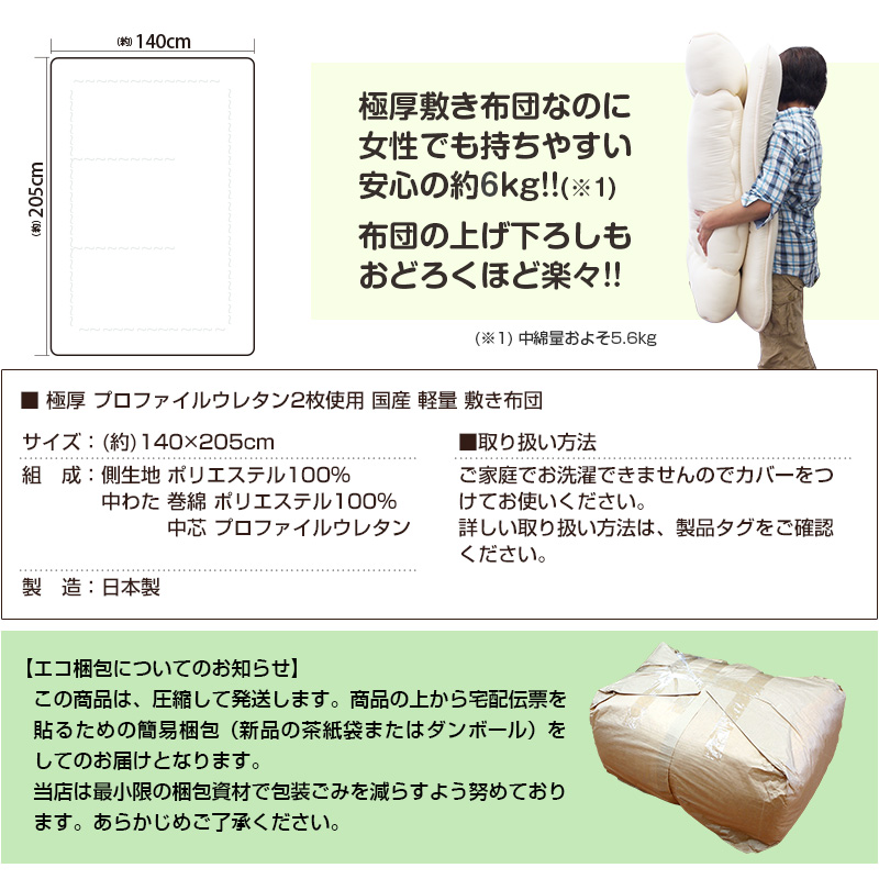 側生地:ポリエステル100%、中わた:巻綿 ポリエステル100%、中芯:プロファイルウレタン