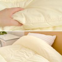 | 中綿の片寄りを防ぐため、四角の形に区切られたキルト加工を施しています。洗濯した際に片寄ってしまった場合、軽くたたいてほぐせば元に戻ります。また、キルト加工を施すことによりフィット性を高める効果もあり、身体と布団とのあいだにすき間ができるのを軽減してくれます。 | |