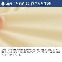 | 生地はしなやかで優しい感触に仕上がりました。さらに吸水加工を施しています。 軽量でしわになりにくく、耐久性に優れていて、ザブザブ洗っても大丈夫な生地です。カラーはアイボリー色。 | |