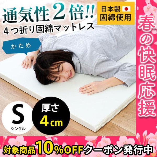 収納にもお手入れにも便利な4つ折りタイプのマットレスです。パタパタっと簡単に折り畳めるので、1枚もののマットレスに比べて取り扱いが簡単。ウレタン製のものと比べると少しだけ重たくはなりますが、小柄な女性でも持ち運びらくらくです。