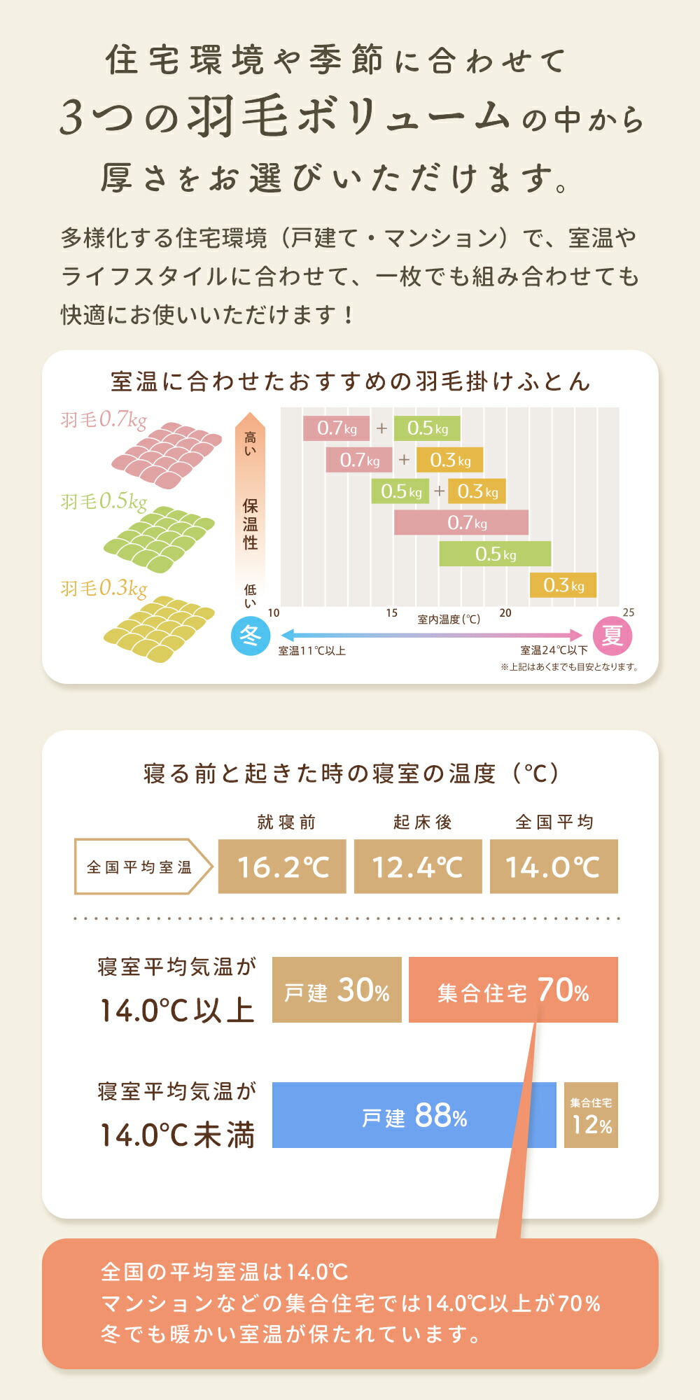 | 合掛け布団(0.5kg) | 合掛け布団(0.7kg) | |