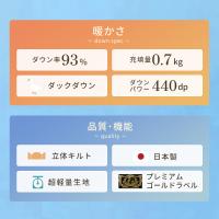 | 仕様 | ホワイトダックダウン ダウンパワー440dp ループ8ヶ所 立体キルト 超軽量生地 プレミアムゴールドラベル |