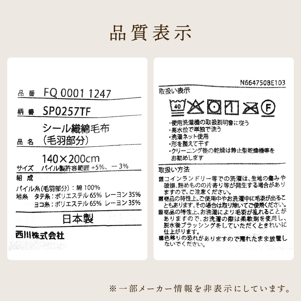 | 組成 | パイル糸(毛羽部分):綿100% |