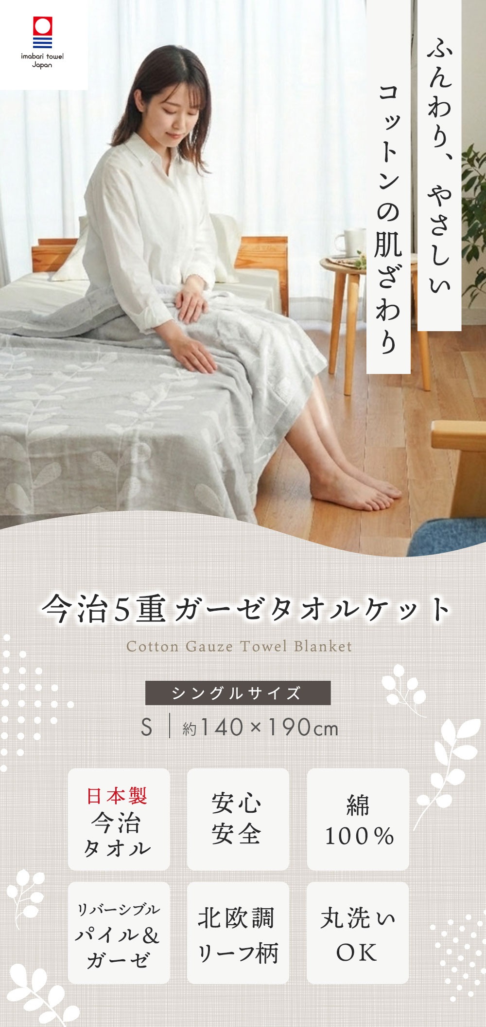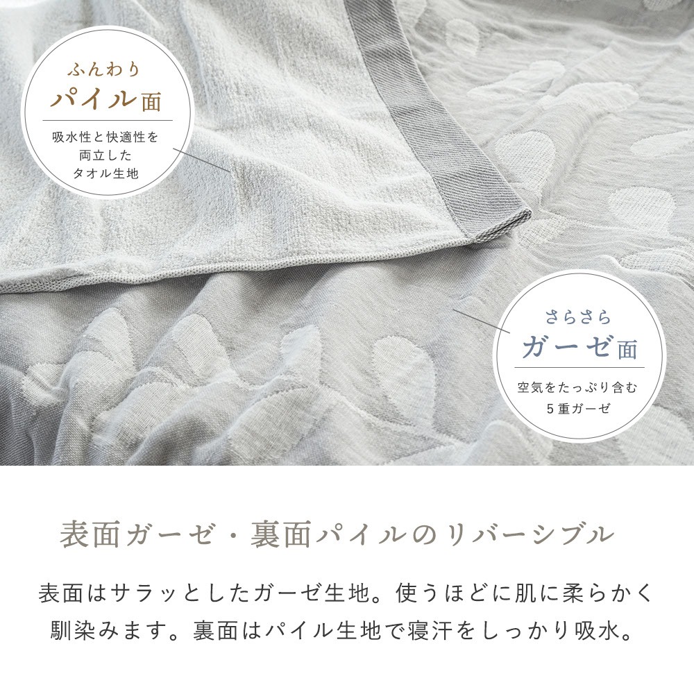 タオルケット ギフト 母の日 今治 シングル 日本製 5重ガーゼ リバーシブル 綿100% 140×190cm 春用 夏用 ノルディックリーフ 北欧