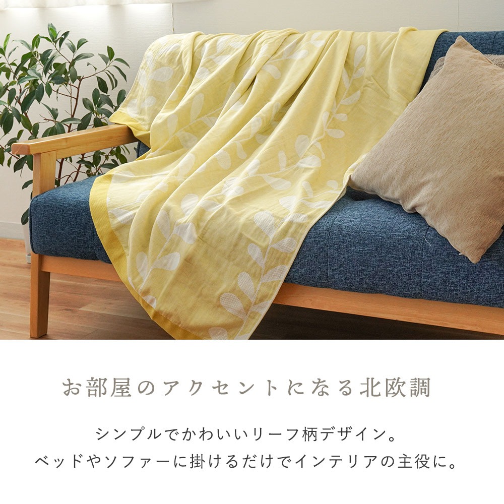シンプルでかわいいリーフ柄デザイン。ベッドやソファーに掛けるだけでインテリアの主役に。