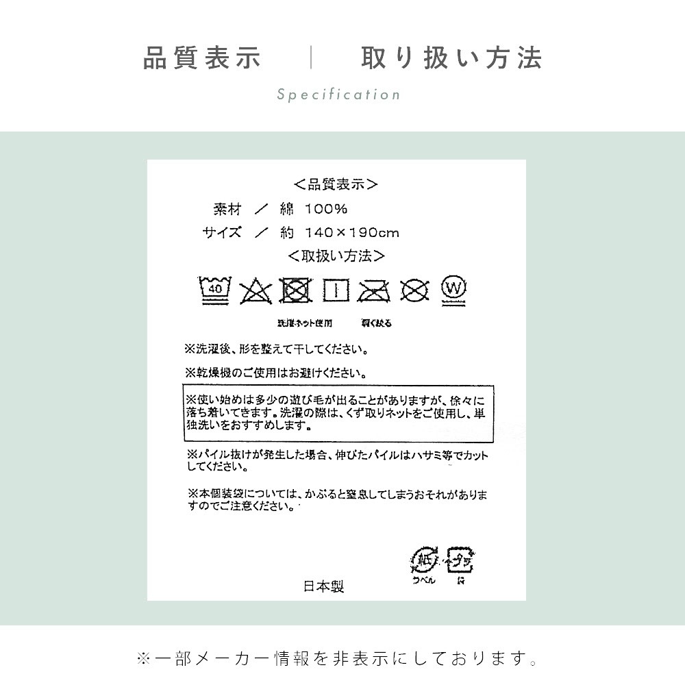 洗濯を重ねるごとに繊維がほぐれ、空気を含んでふんわり。使うほどにふんわり感がアップするする、やさしい寝心地のタオルケットです。