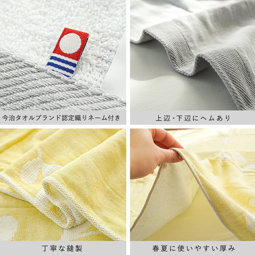 今治ブランドマークは優れた吸水力と高い安全性の証。春夏はもちろん、冷房対策にも使えるガーゼケットです。ムレ感の原因となる汗や湿気を吸収し、さらりと快適。