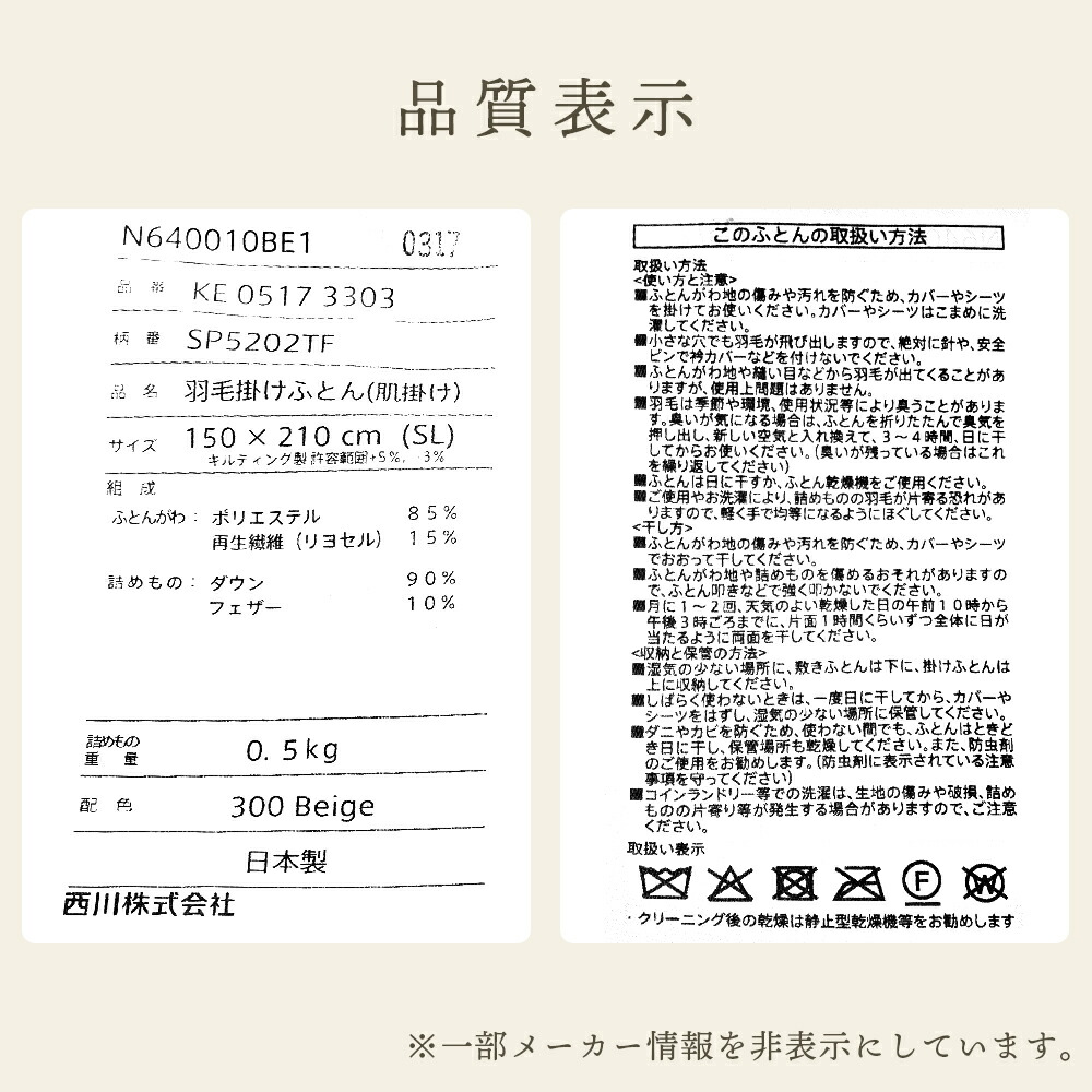 | 合掛け布団(0.5kg) | 合掛け布団(0.7kg) | |