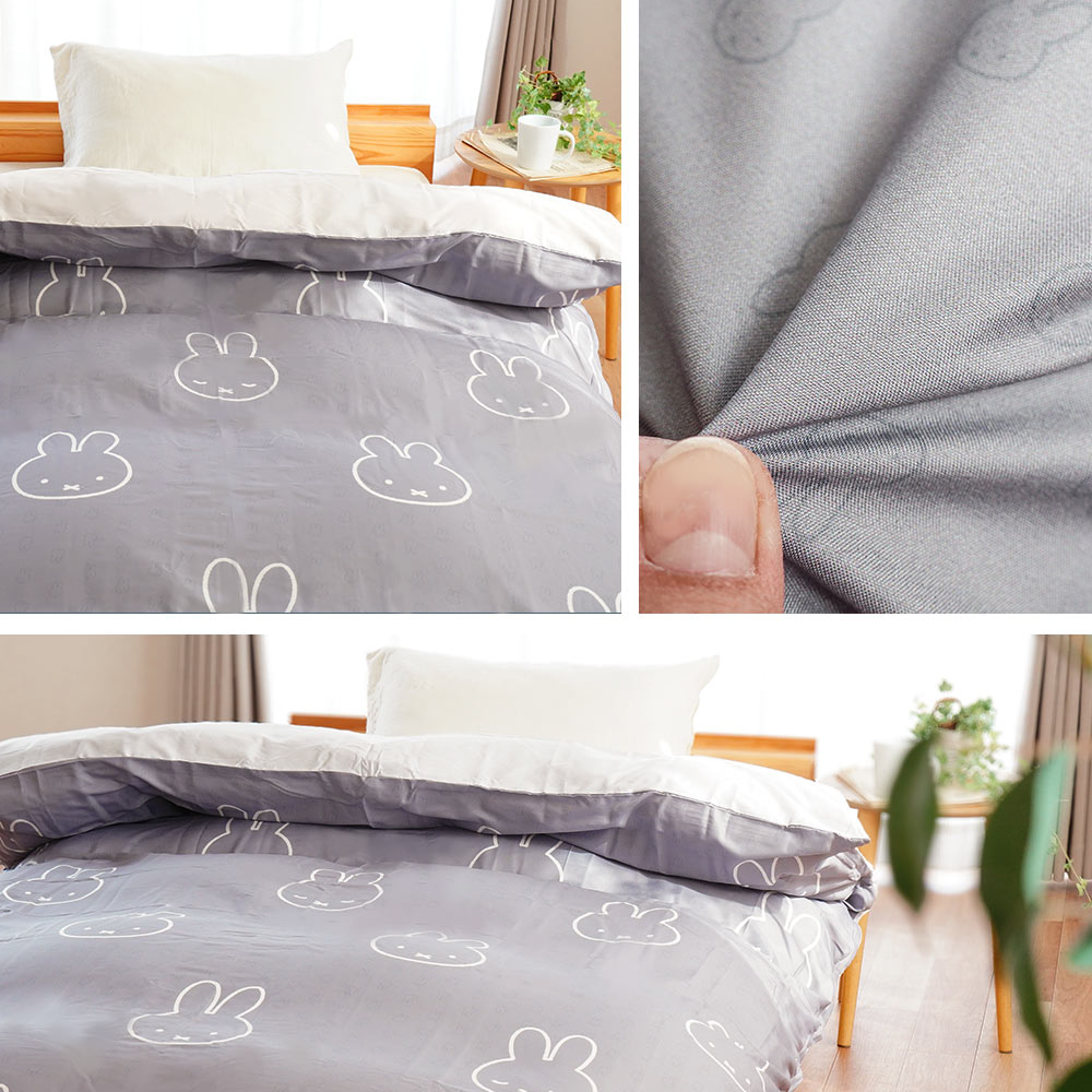 | ・かわいいミッフィーデザイン 子どもから大人まで、色んな世代から愛されるミッフィーがかわいいカバーになりました。 ポリエステル生地は乾きやすく、良い感じにシワがのびてくれるのでお手入れがらくちん。 「眠りにもっと安心を」 | |