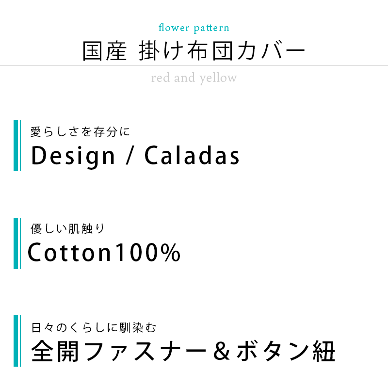 | ご注意 | ■商品画像はイメージです。カバー一式や布団などをセットで販売しているわけではございません。商品名でカバーの種類とサイズをよくお確かめの上ご注文下さいますよう、よろしくお願い致します。 ■裏地の色は予告なく変更になる場合があります。 ■製造時期によって色合いが異なる場合があります。 ■できるだけ実物と同じ色合いになるようにしていますが、パソコンモニタの環境などによって実物と色合いが異なる場合がございます。予めご了承ください。 ■お洗濯の際には取り扱い方法及びご使用の洗濯機の説明書をよくご確認ください。 |