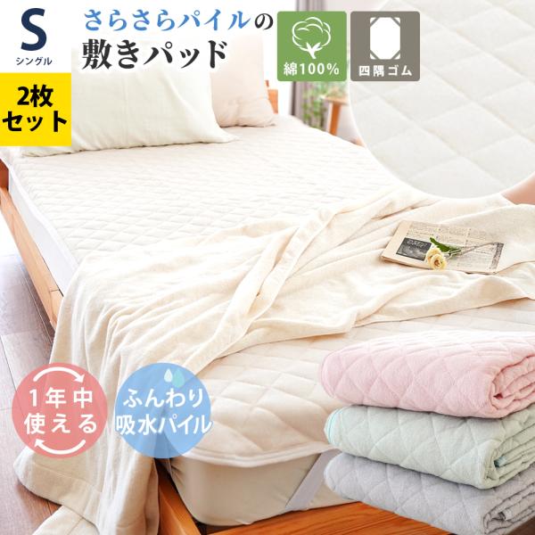 敷きパッド シングル 2枚セット 綿100% シンカーパイル 吸水 速乾 洗えるパットシーツ ベッドパッド
