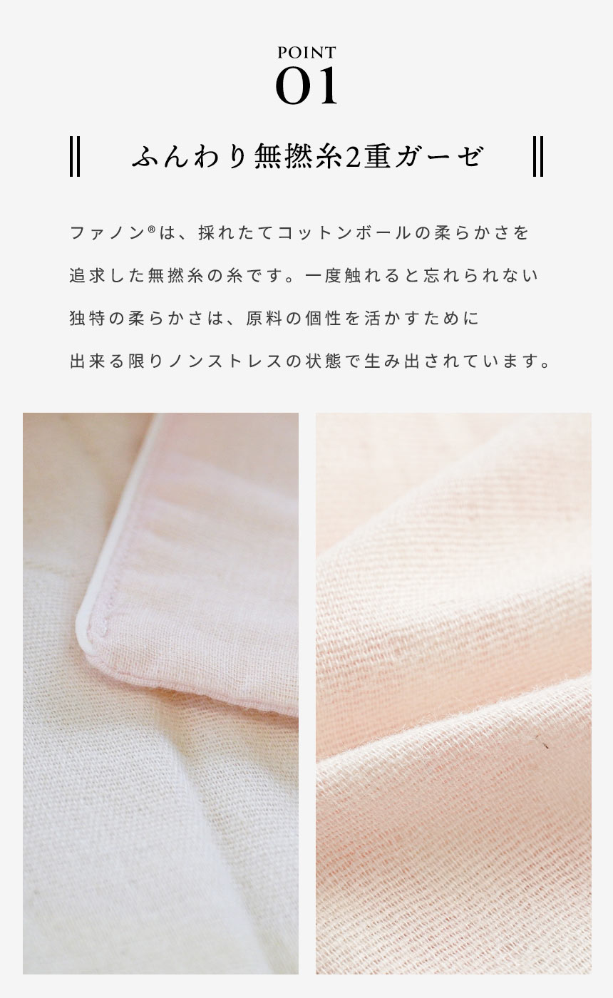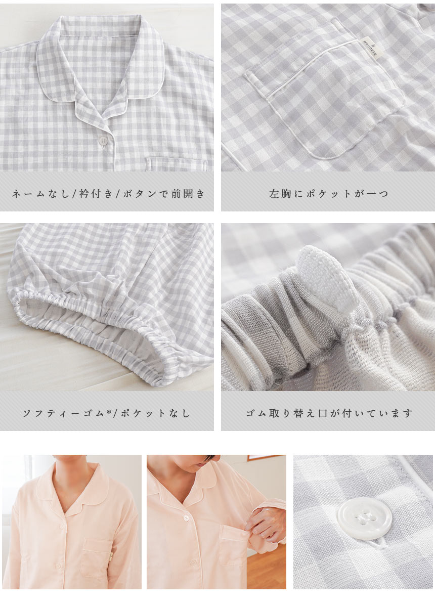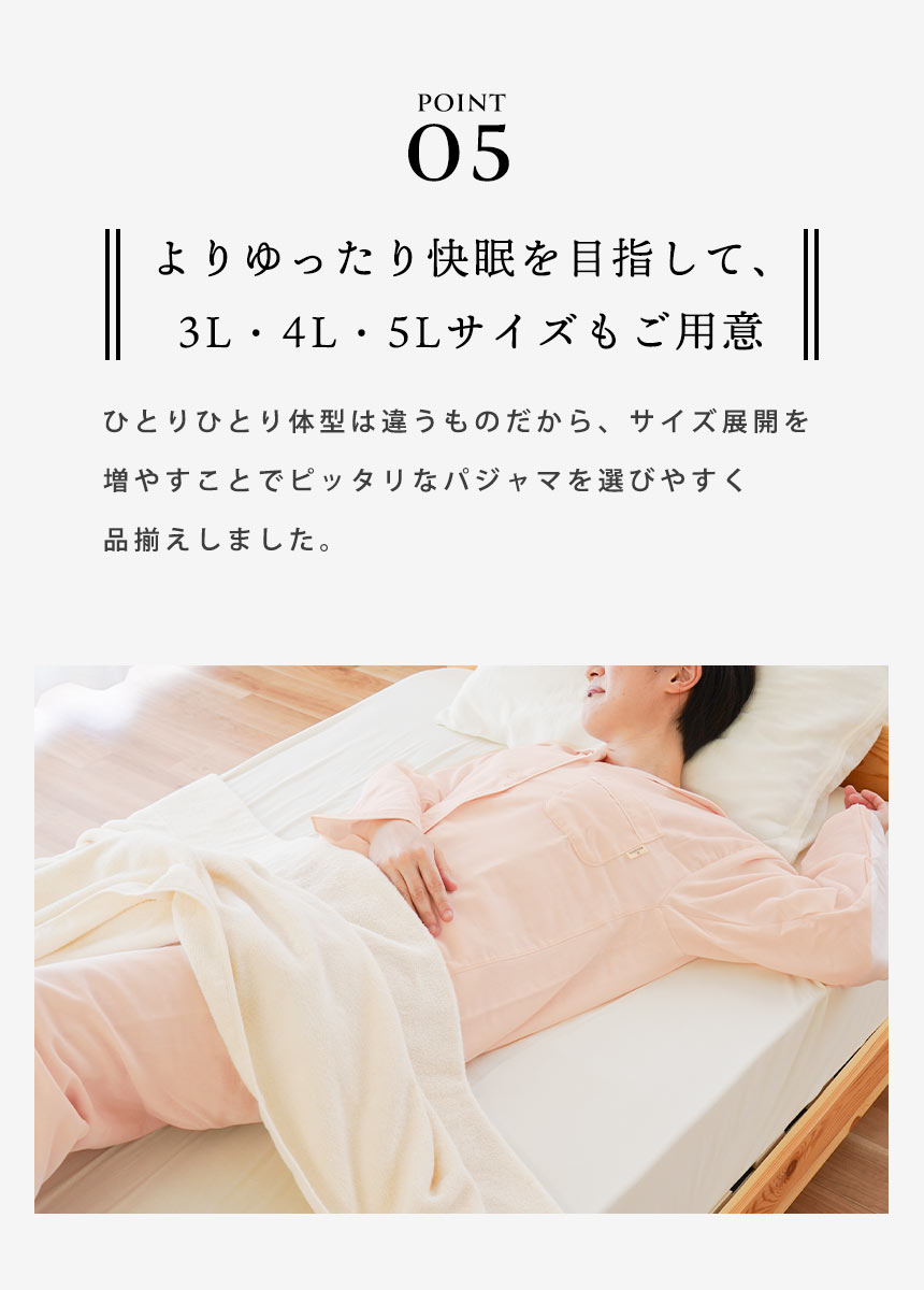 | ・眠りをもっと最高のひとときに 素材にこだわり、年齢や季節に左右されない、ストレスフリーなパジャマブランド「wellneru(ウェルネル)」。 睡眠環境寝具指導士が考えたパジャマで毎日の睡眠に幸せを感じてほしい。肌も心もよろこぶ、そんな眠りを追求しました。 ・睡眠に適したパジャマの三要素肌あたり…ソフトで肌触りが良く軽い着心地の無撚糸2重ガーゼ。 パジャマを着ることが眠りのスイッチに。音楽を聞く、アロマを焚く、半身浴をするなど、 さまざまなスリープセレモニーがあります。その中でも、パジャマを着ることは 入眠効果が高い方法といわれています。スムーズに眠れない方は、パジャマを着て 寝ることから初めてみませんか? ・ふんわり無撚糸2重ガーゼファノン(R)は、採れたてコットンボールの柔らかさを追求したクラボウ独自の特殊紡績素材です。一度触れると忘れられない独特の柔らかさは、原料の個性を活かすために出来る限りノンストレスの状態で生み出されています。 ・快眠設計で不快感を軽減縫い線をずらして、袖周りのストレスを軽減 パジャマの生産量国内第1位のカイタックファミリー。 パジャマを熟知した職人さんたちの技術やノウハウが詰め込まれた こだわりの一品です。 ・綿100%のやさしい着心地天然素材の綿は、吸水性・吸湿性に優れていてお肌にもやさしい素材で、 敏感肌の方にも安心してお使いいただけます。 | |