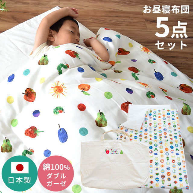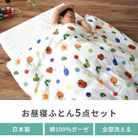 お昼寝布団セット はらぺこあおむし 日本製 綿100% 2重ガーゼカバー バッグ付 洗える布団 ふとん 5点セット set