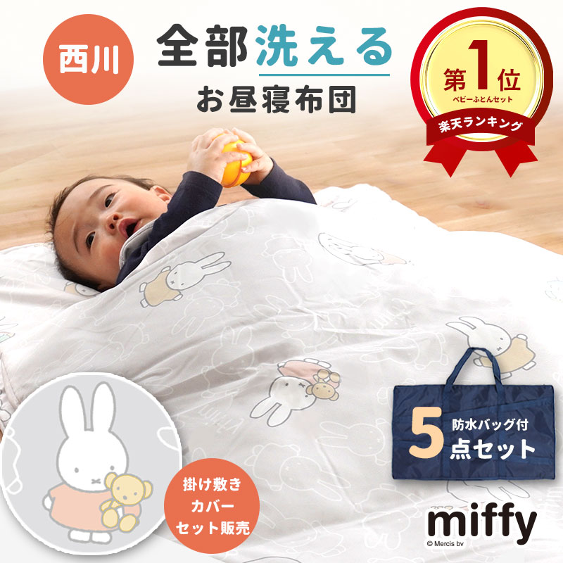 西川 ミッフィー お昼寝布団セット 5点セット 防水バッグ付き 洗濯機で洗える リュック 保育園 カバー2点セット付き
