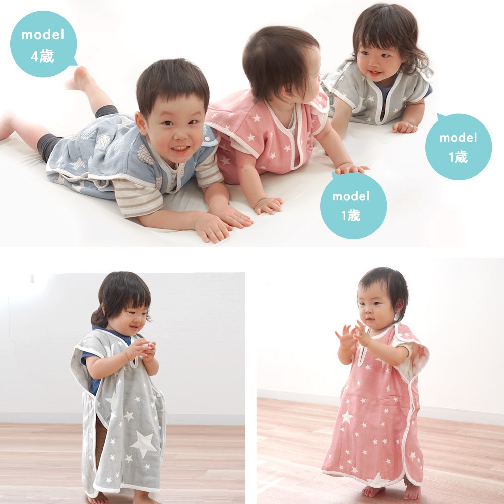 ベビー スリーパー 綿100% 6重ガーゼ オールシーズン ことり柄/スター柄 赤ちゃん 子ども ベスト 半纏 上着 baby メール便