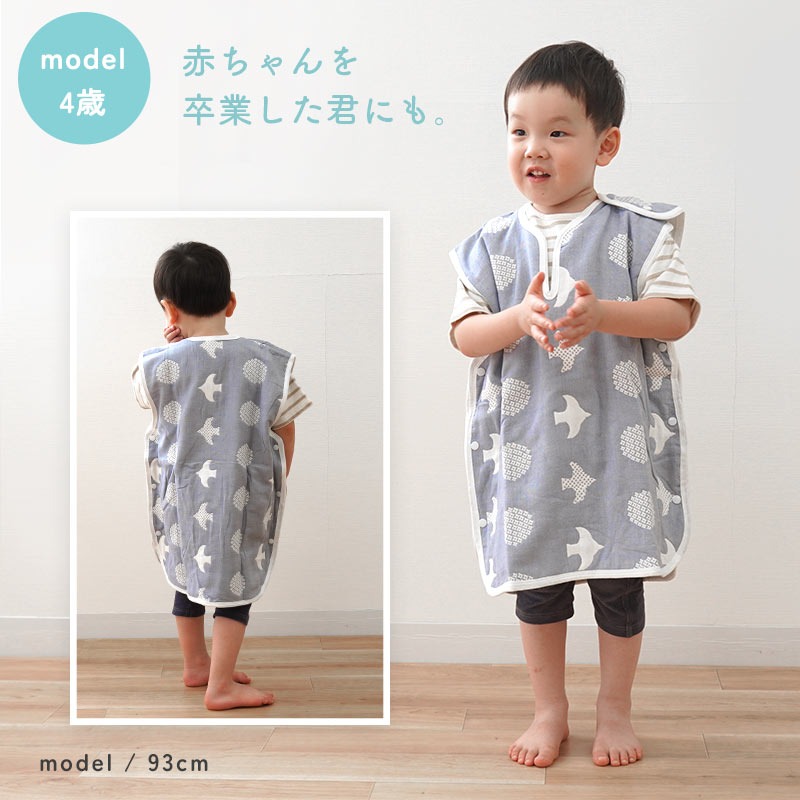 すっぽり着せて脱げにくい!6重ガーゼのスリーパー。