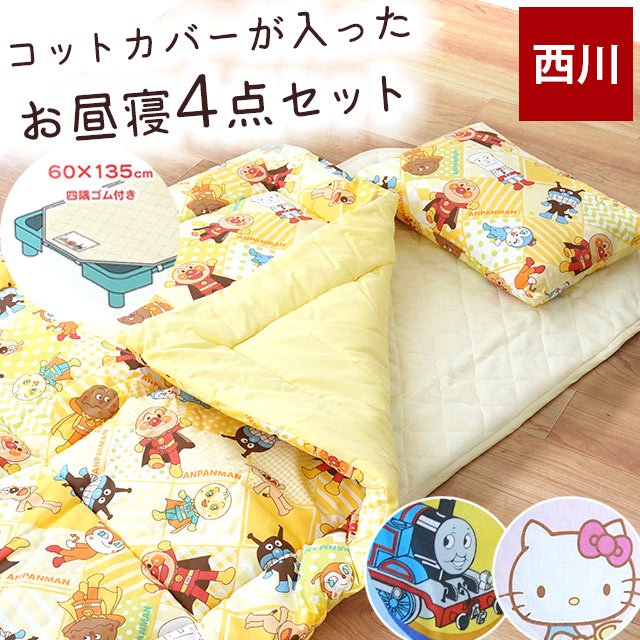 西川 お昼寝布団セット アンパンマン サンリオ トーマス コットカバー入り 4点セット 洗える布団 掛け布団 まくら set