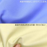 表面中央部はしっかり耐久性に優れたデニム生地。裏面中央部には防水+抗菌・防カビ加工済み!