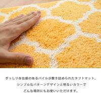 ぎっしり存在感のあるパイルが敷き詰められたタフトマット。シンプルなパターンデザインと明るいカラーでどんな場所にもお使いいただけます。