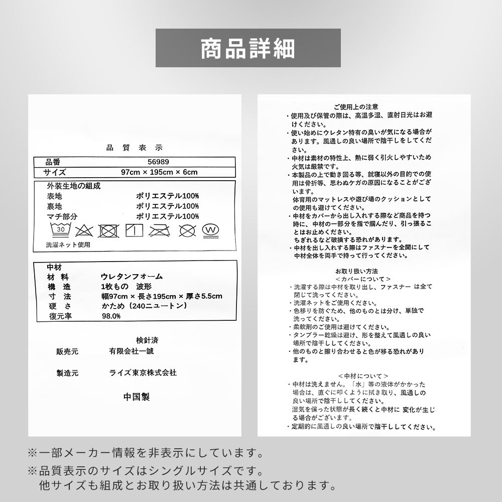 | その他注意 | ■中材のウレタンは洗えません。側地カバーのみ洗濯可能です。 |
