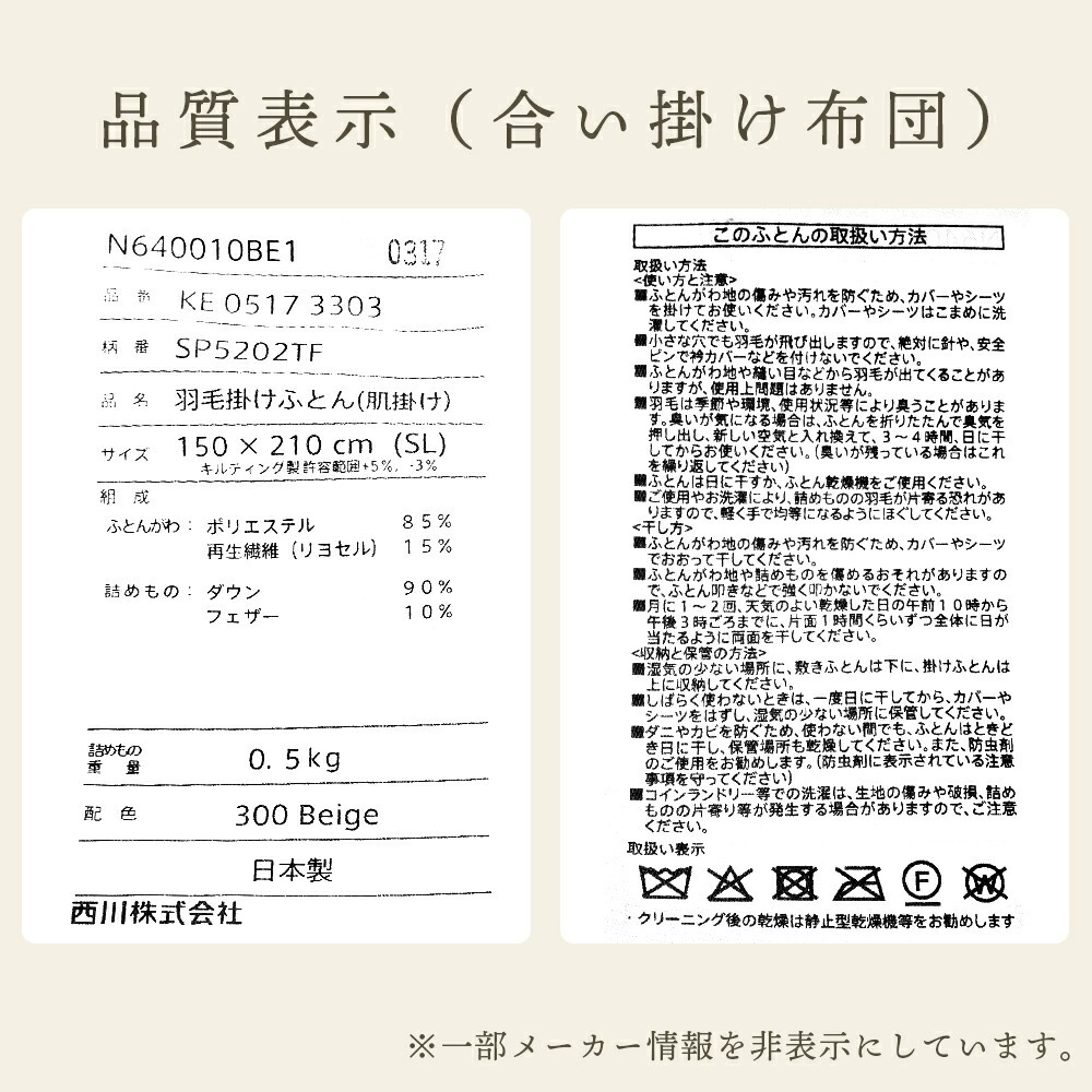 | セット内容 | 羽毛肌掛け布団(0.3kg入り)1枚 |