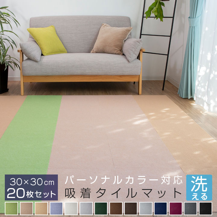 吸着マット タイルカーペット 30cm×30cm 【20枚セット】厚さ4mm パーソナルカラー 洗える 接着材不要 吸着 タイルマット カーペット 春 夏 秋 冬 ウォッシャブル イエローベース ブルーベース コーディネート パーソナル空間 リビング 子供部屋 寝室 ペット用 オフィス