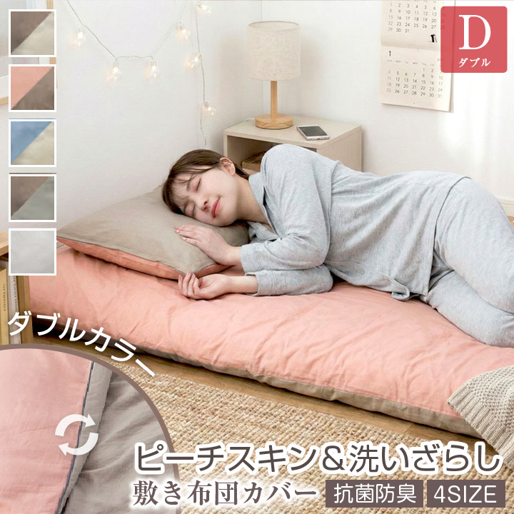 敷き布団カバー ダブル バイカラー ダブルカラー リバーシブル 水洗い加工 ピーチスキン加工 なめらか 抗菌防臭 敷布団カバー オールシーズン