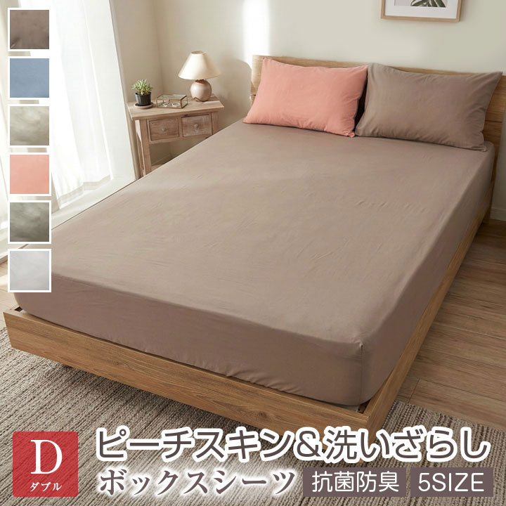 ボックスシーツ ダブル バイカラー ダブルカラー リバーシブル 水洗い加工 ピーチスキン加工 なめらか 抗菌防臭 オールシーズン 春 夏 秋 冬 寝具