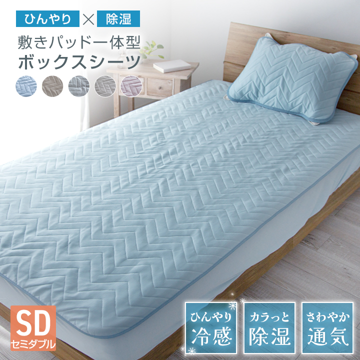 ボックスシーツ セミダブル 一体型 敷きパッド一体型ボックスシーツ 120×200cm 除湿 冷感 ひんやり 敷きパッド ベッドパッド ベッドシーツ パッドシーツ