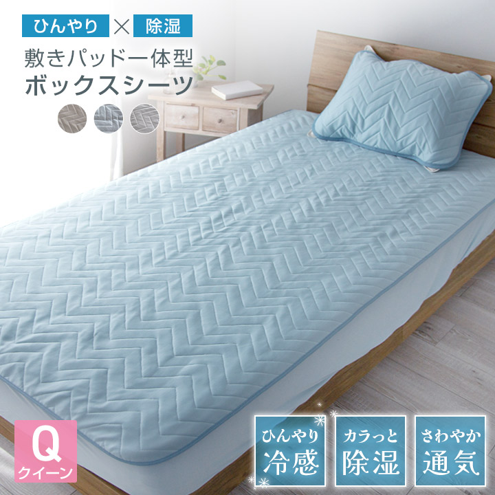 ボックスシーツ クイーン 一体型 敷きパッド一体型ボックスシーツ 160×200 除湿 冷感 ひんやり 敷きパッド ベッドパッド ベッドパット ベッドシーツ パッドシーツ 春 夏