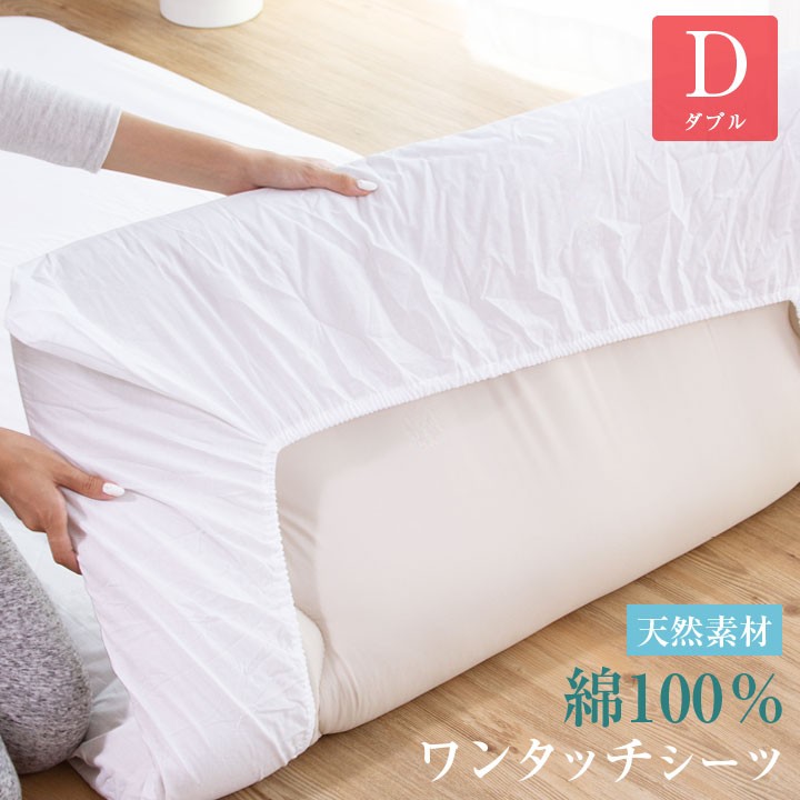 ワンタッチシーツ 綿100% ダブル 天然素材 布団カバー 敷き布団シーツ すっぽりシーツ シーツ 布団 寝具