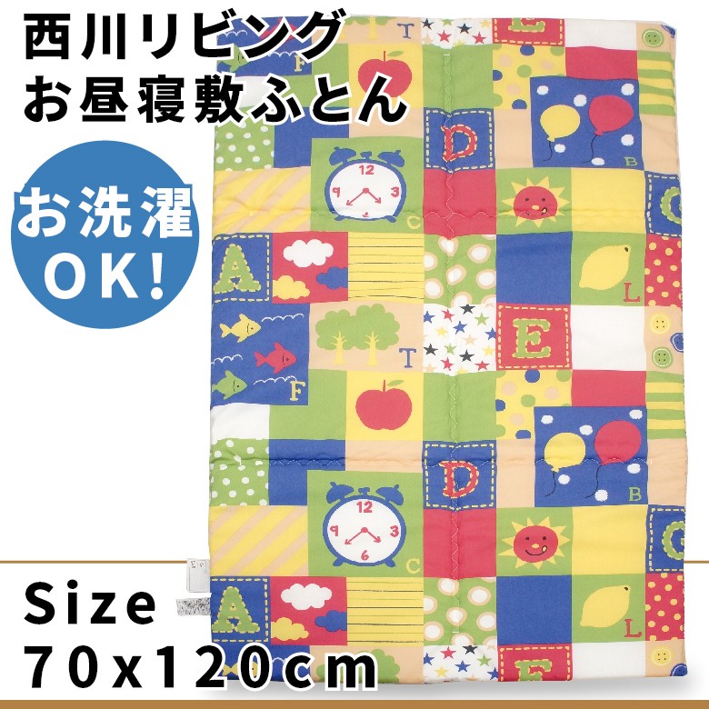 西川リビング お昼寝用敷きふとん 70x120cm 柄 ブロック 日本製 ウォッシャブル 敷き布団 ネームタグ付き