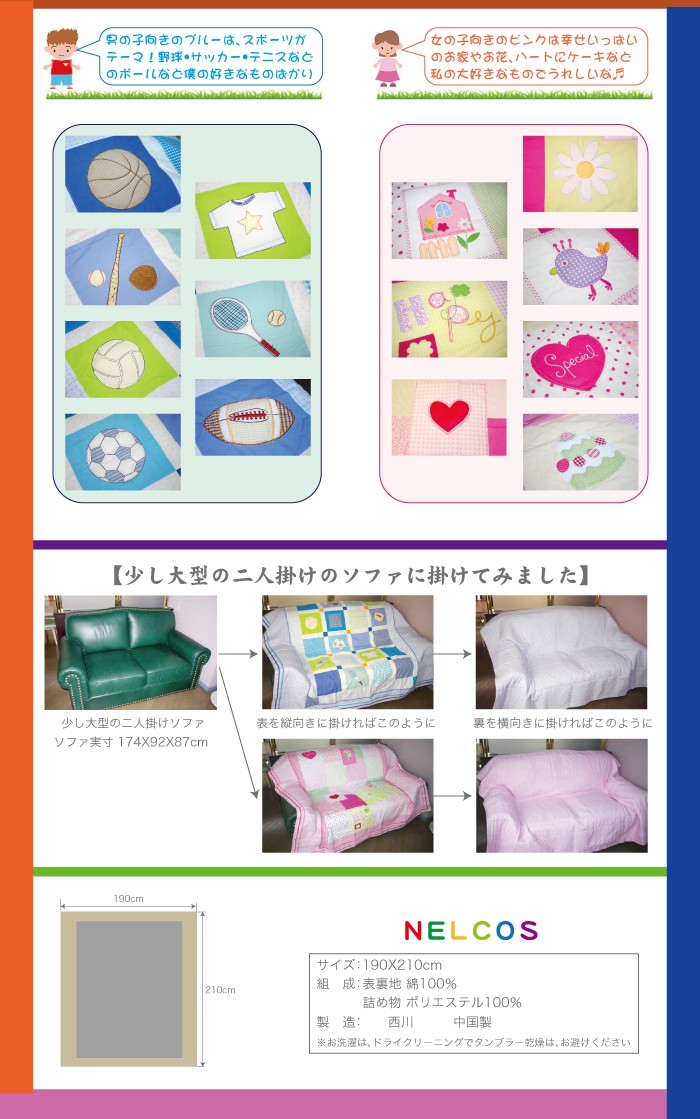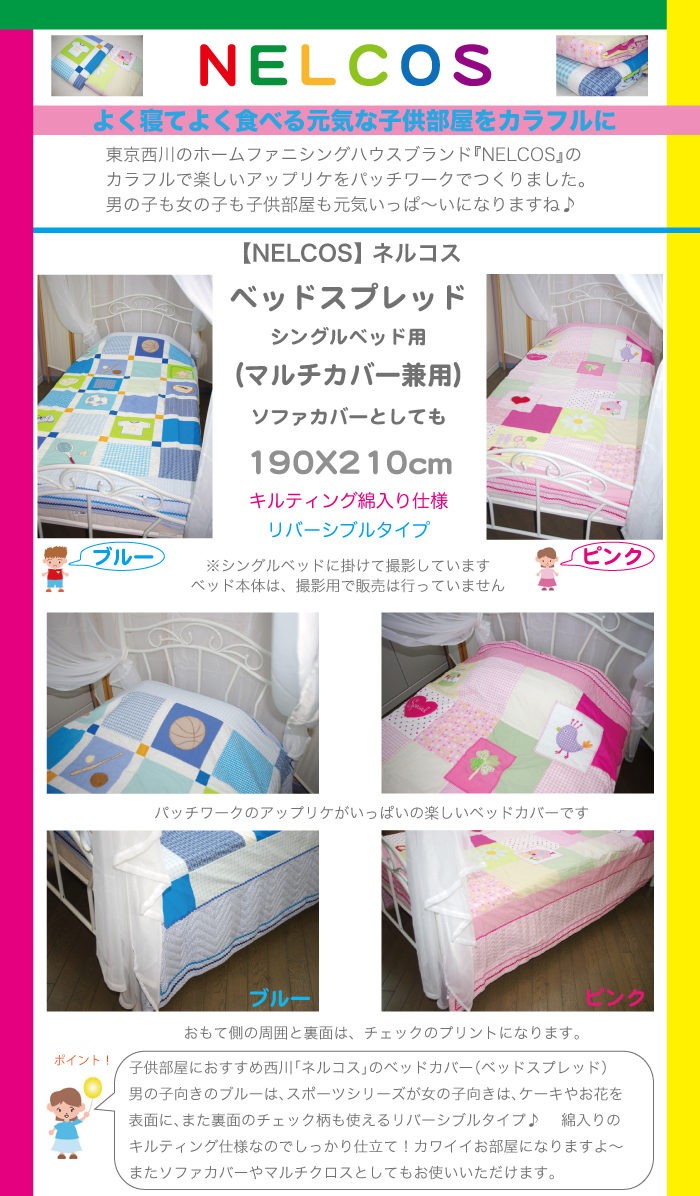 西川 NELCOS ネルコス ベッドスプレッド シングルサイズ 190X210cm 綿100% ベッドカバー プレイマット にも使用可